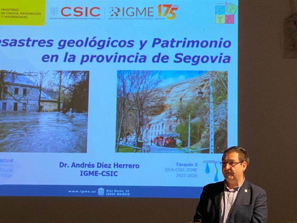 - 2025-01-20. Conferencia “Desastres geológicos y Patrimonio en la provincia de Segovia” XI Ciclo “Segovianos que hablan de Segovia” 2024-2025. Asociación de Amigos del Patrimonio de Segovia. Salón de actos del Museo de Arte Contemporáneo Esteban Vicente (antigua capilla del Hospital de Viejos).