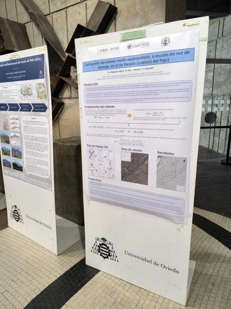 - 2025-09-03 a 05 Presentación de dos comunicaciones de directamente derivadas del proyecto Tarquín (y otras en colaboración con otros proyectos) en la XVII Reunión Nacional de Geomorfología (Oviedo, Asturias): una comunicación oral sobre un nuevo registro de paleoinundaciones en Trillo (Guadalajara), útil para la redefinición de la zona inundable en el sistema de refrigeración de la central nuclear y que se integrará en PaleoRiada; y otra en formato póster sobre la cartografía de tramos fluviales con tendencia a la incisión o acreción fluvial. Los resúmenes han sido publicados en el libro de actas del congreso, que será accesible tras un periodo de embargo por la editorial: