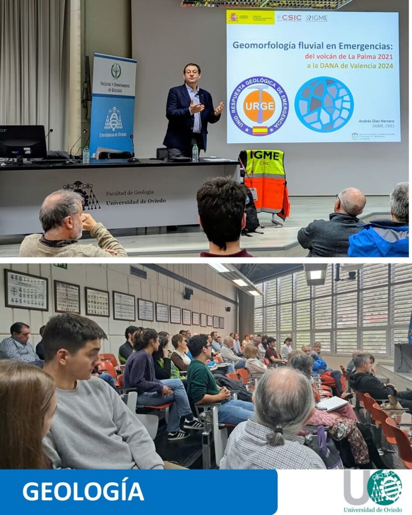 - 2025-11-11. Conferencia invitada por Decanato: “Geomorfología fluvial en Emergencias: del volcán de La Palma 2021 a la DANA de Valencia 2024”, Facultad de Geología, Universidad de Oviedo (Oviedo).