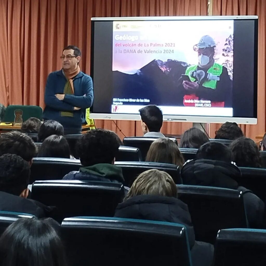 - 2025-12-05. Conferencia invitada “Geólogo en Emergencias: del volcán de La Palma 2021 a la DANA de Valencia 2024”, Departamento de Biología y Geología, I.E.S. Francisco Giner de los Ríos (Segovia).