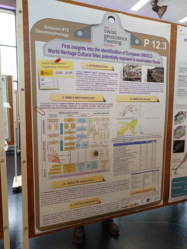 - Díez-Herrero, A.; Ruiz-Villanueva, V. (2025). First insights into the identification of European UNESCO World Heritage Cultural Sites potentially exposed to wood-laden floods. In: Abstract Volume, 23rd Swiss Geoscience Meeting 2025, Symposium 12, Geomorphology, P 12.3, p. 371. Bern 5–6 December 2025, Swiss Academy of Sciences (SCNAT), Platform Geosciences, 758 pp.